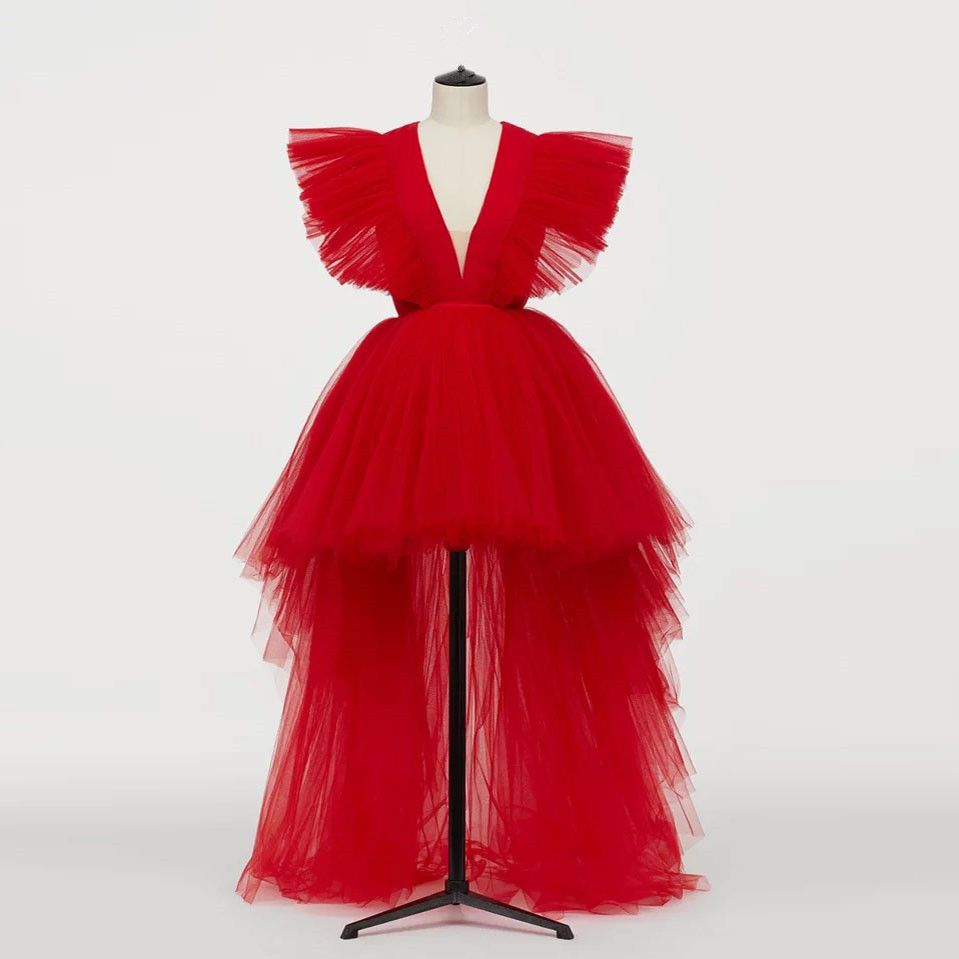 Cute High Low Prom Dresses Red Tulle Deep V Neck Long Tutu Cocktail Party Gowns Ruffles Formal Graduation Evening Dress Short Front From Sexybride 117 52 Dhgate Com